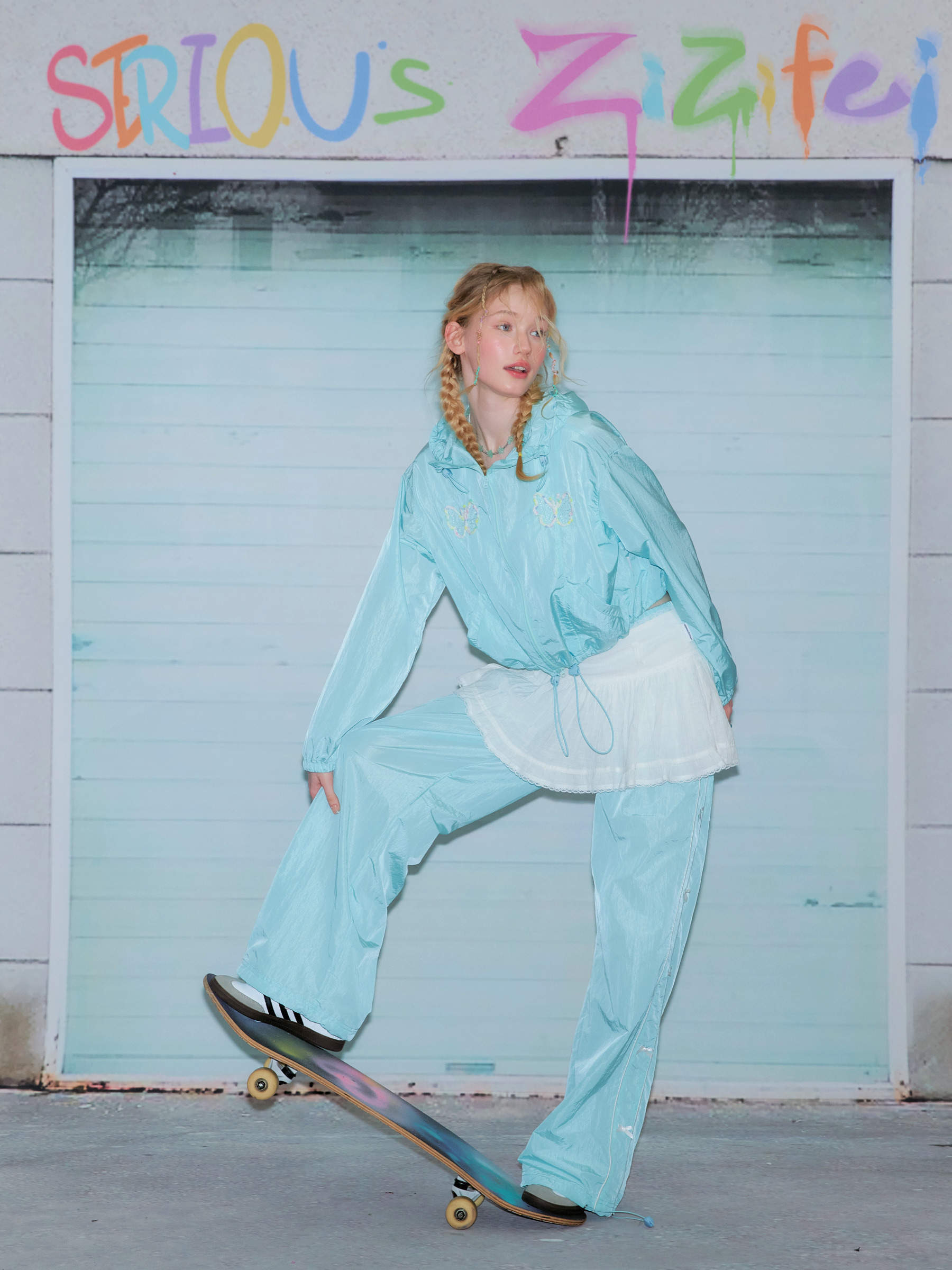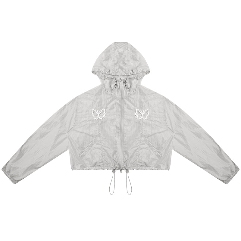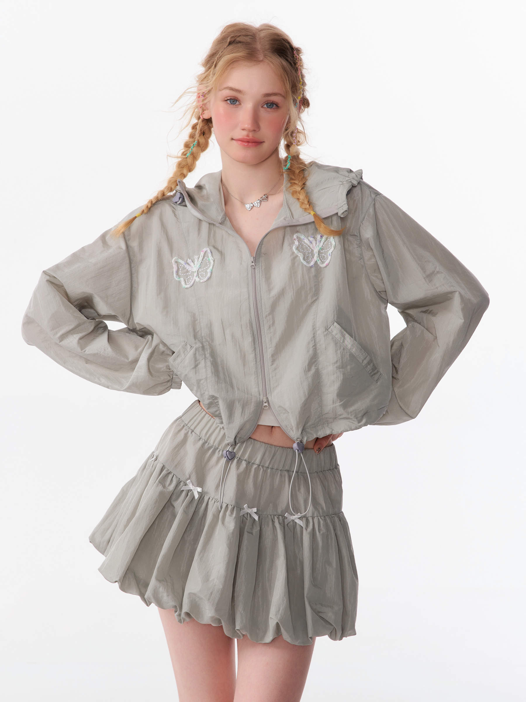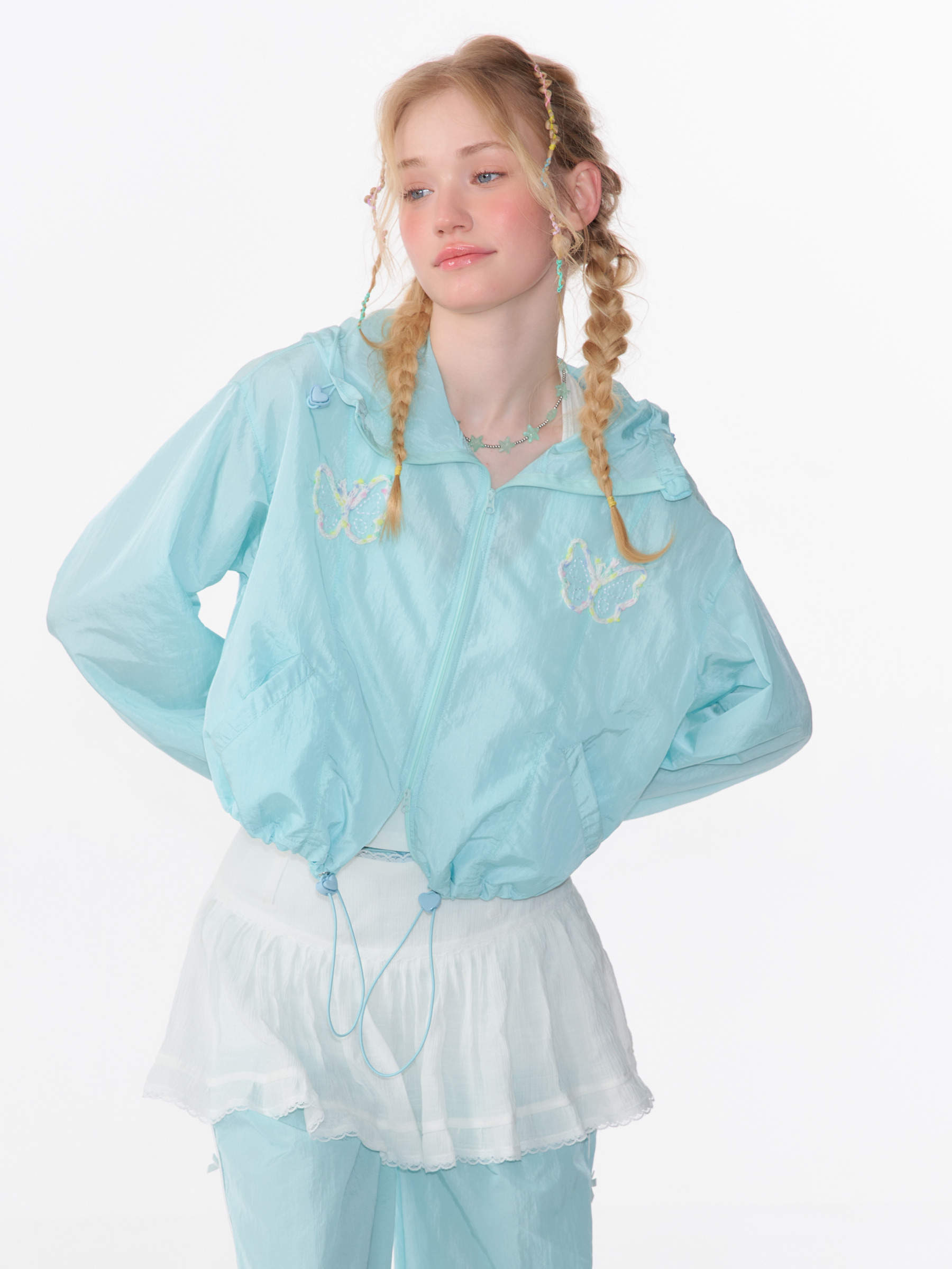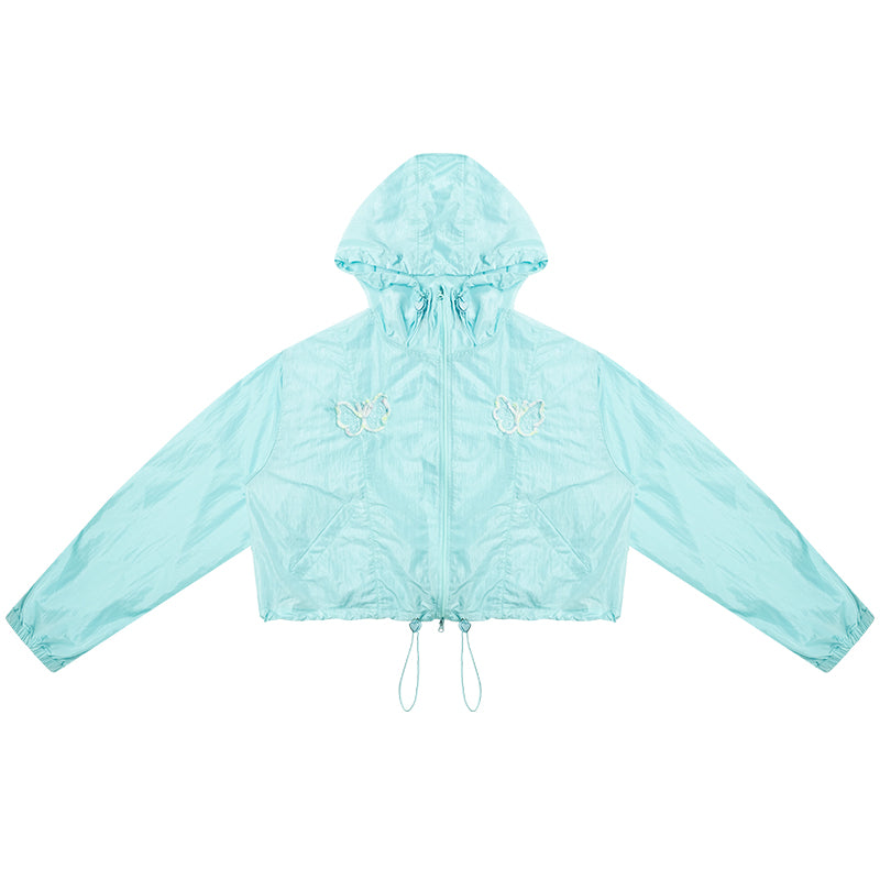 Butterfly Embroidery Hooded Short Long Sleeve Cardigan Women's
