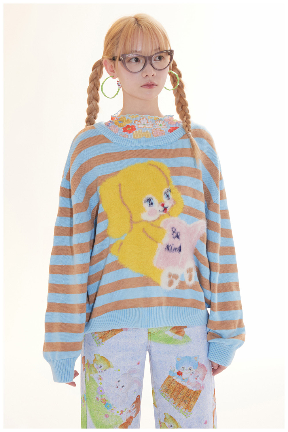 This stylish contrast cute bunny wool sweater is made with high-quality, soft materials for both comfort and durability. Its adorable design adds a playful touch to your wardrobe, while the wool fabric provides warmth and insulation. A must-have for any fashion lover looking to stay cozy and chic.