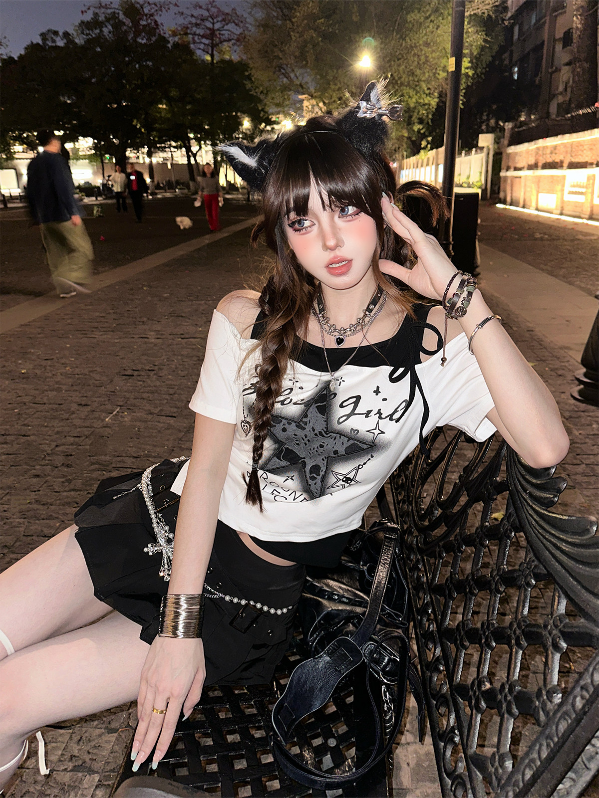 Galaxy Fantasy Layered Off-Shoulder T-Shirt