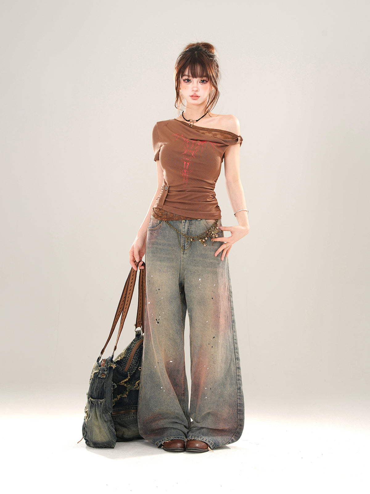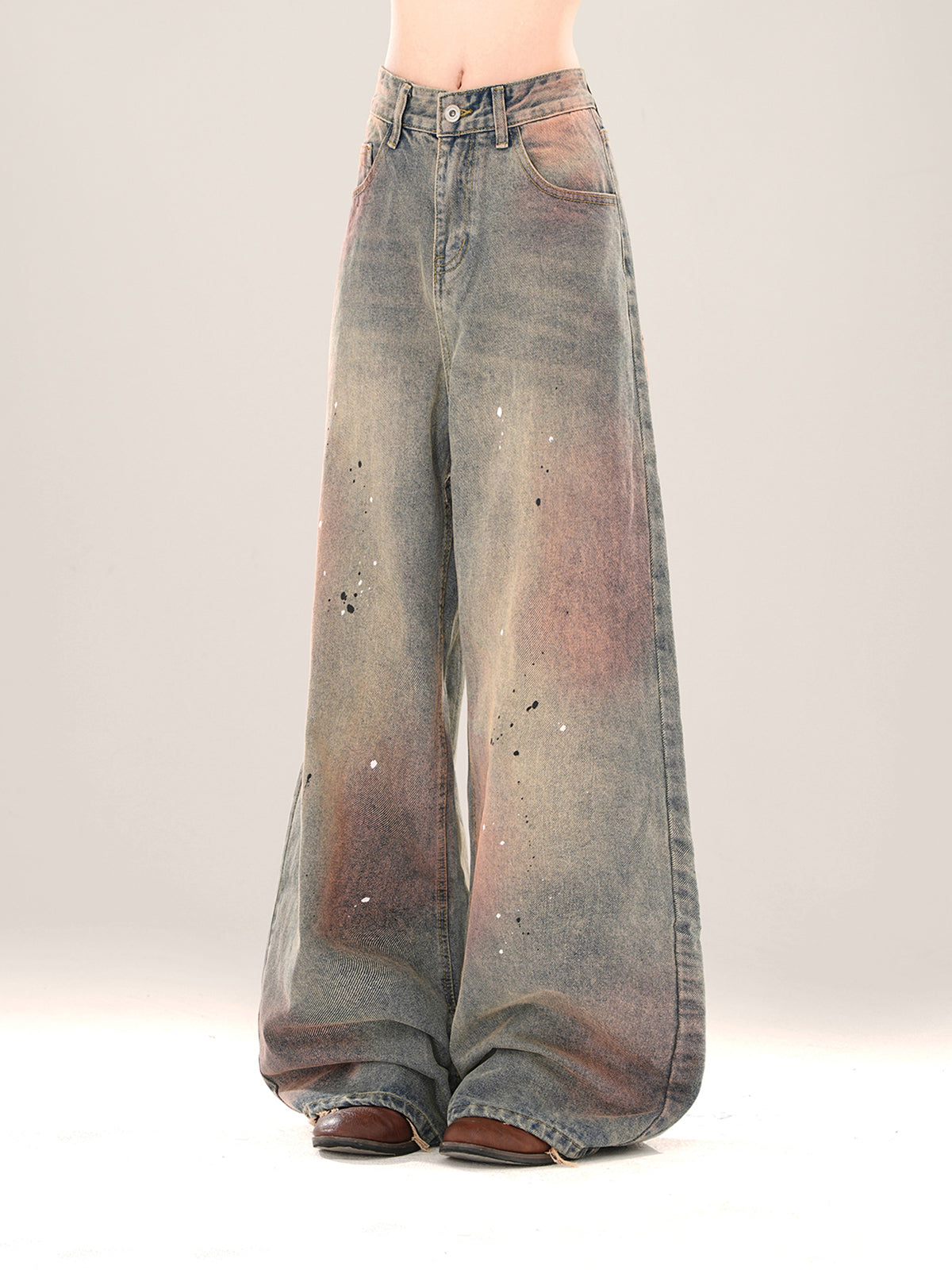 Gradient Loose Wide-Leg Jeans Women's Spring/Summer Straight-Leg Pants