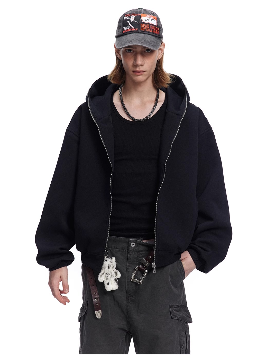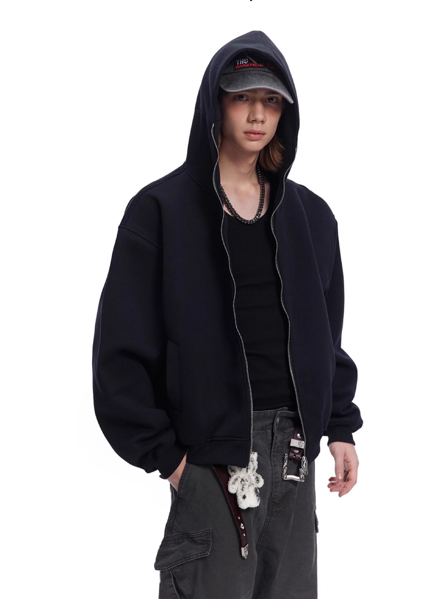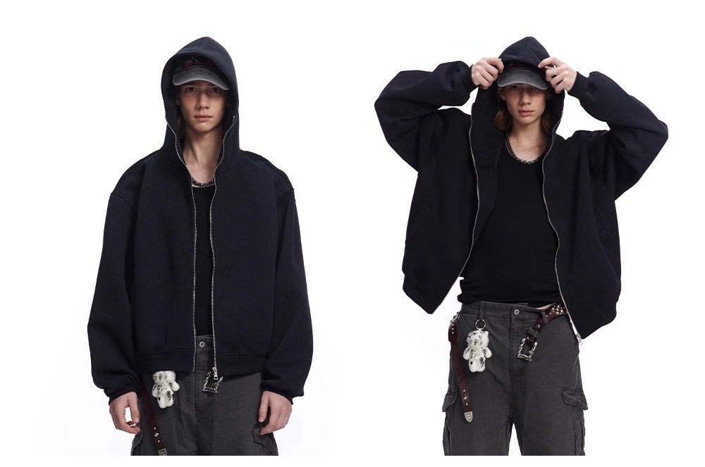 Heavyweight Double Zipper Cropped Unisex Hoodie