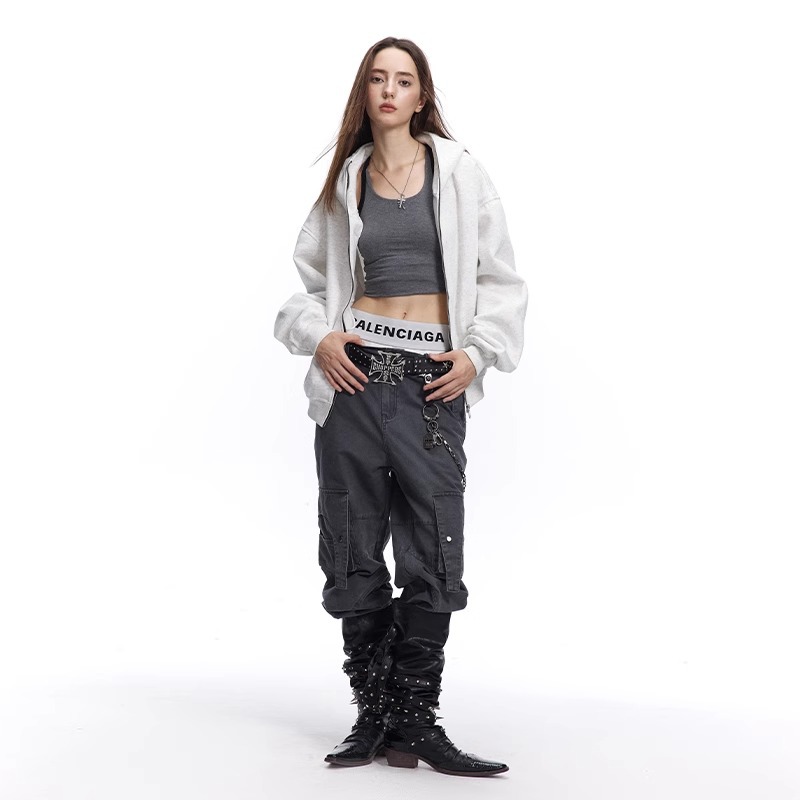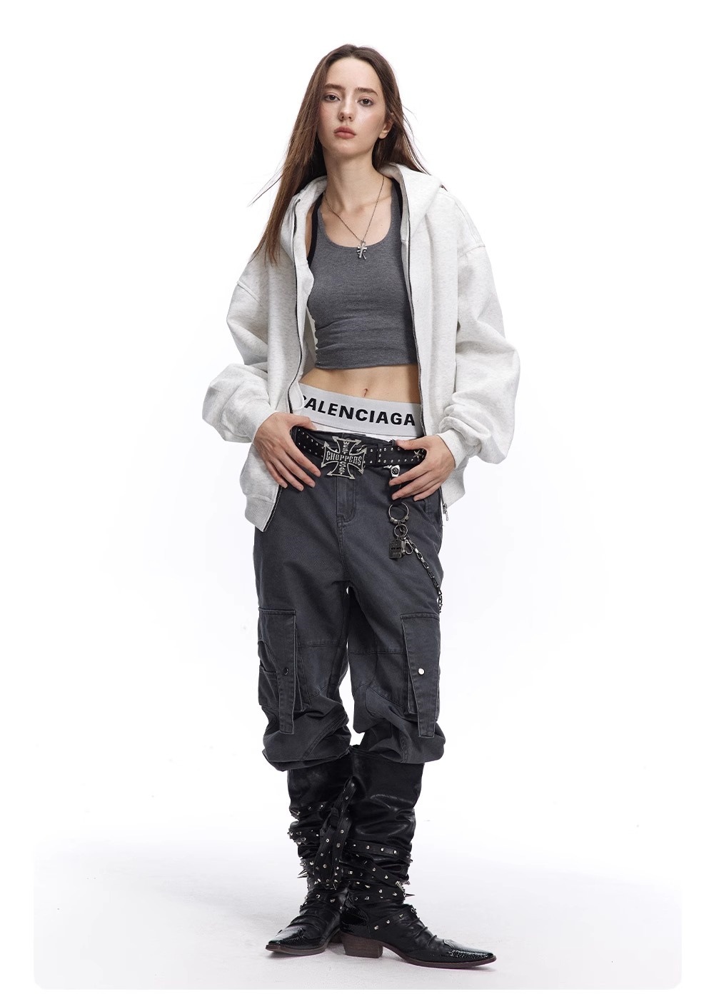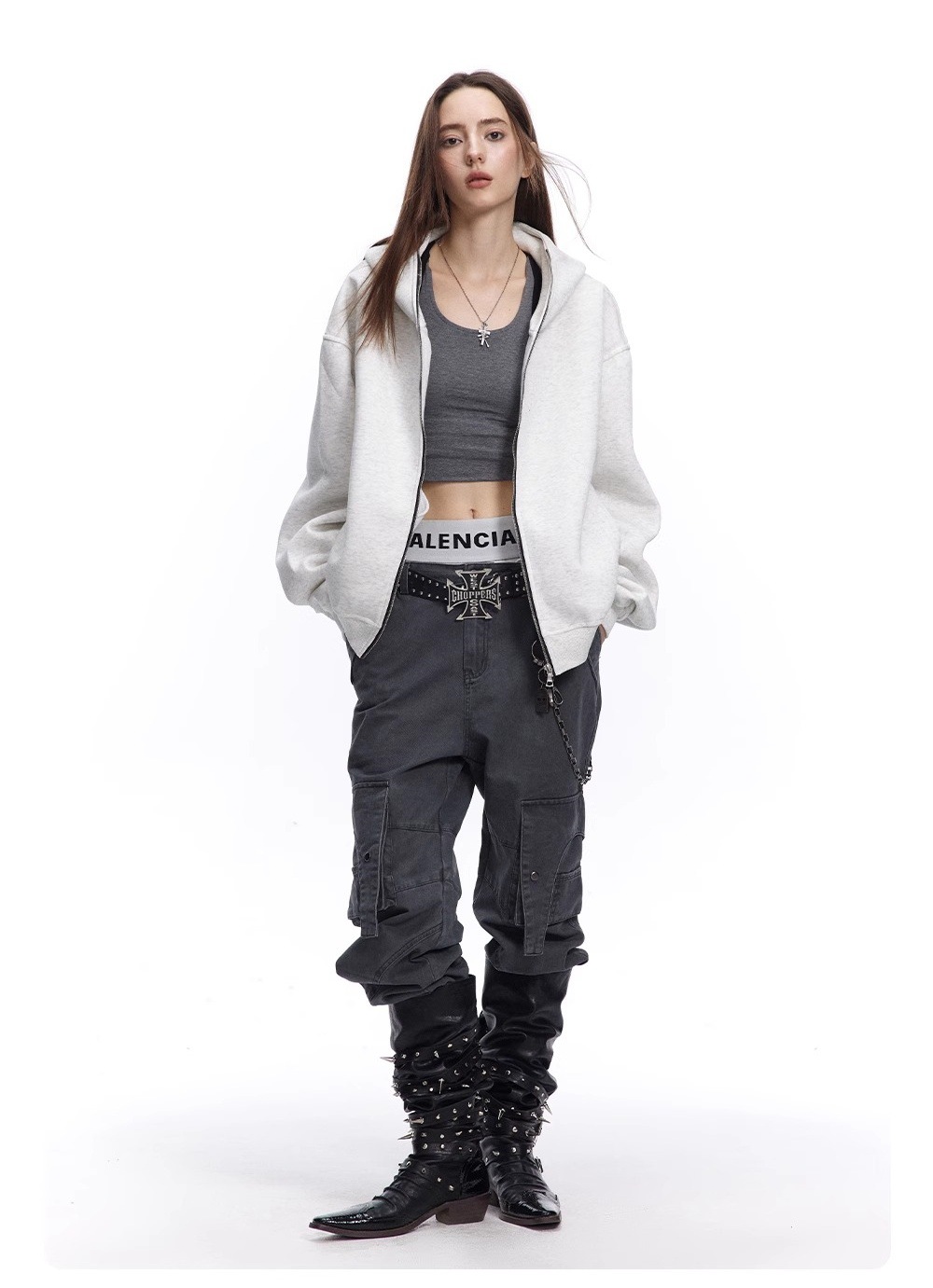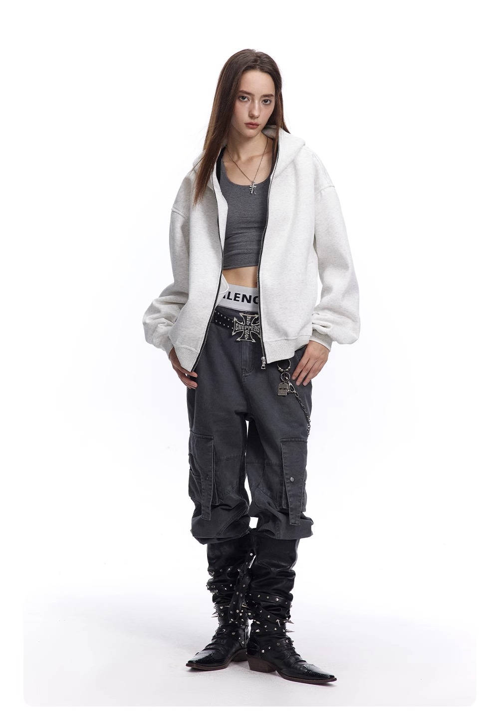 Heavyweight Double Zipper Cropped Unisex Hoodie