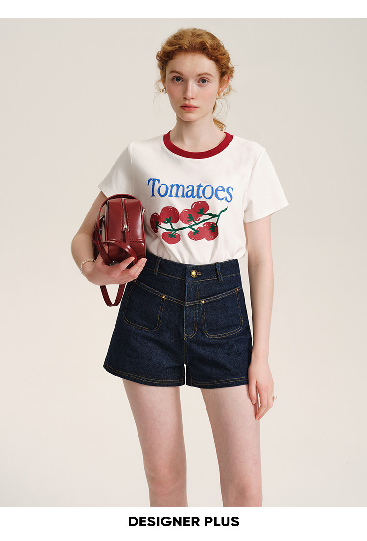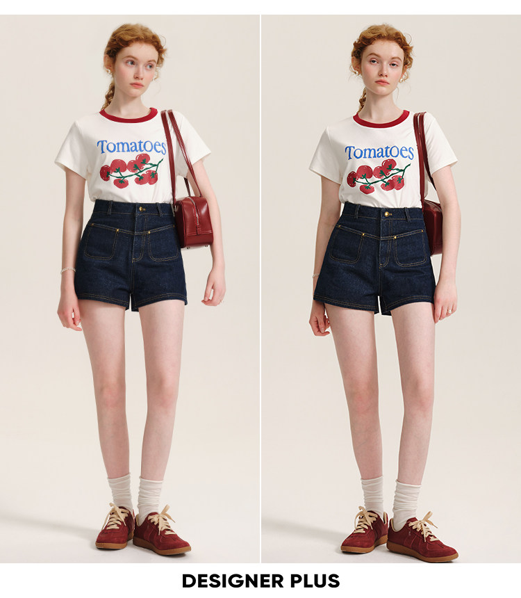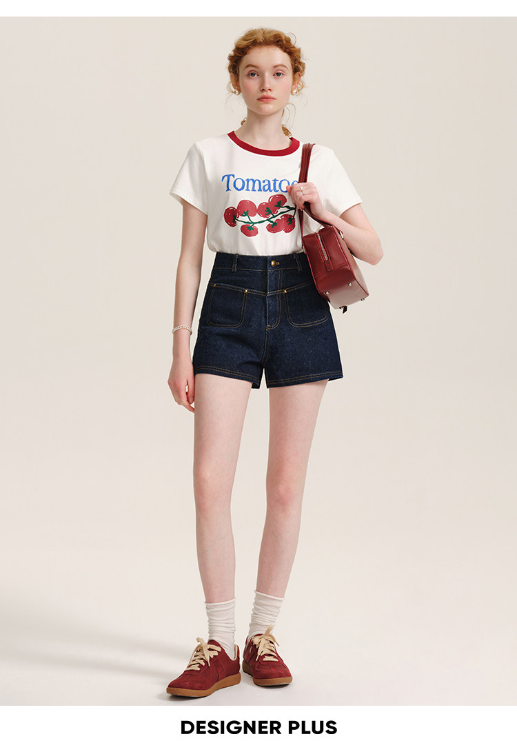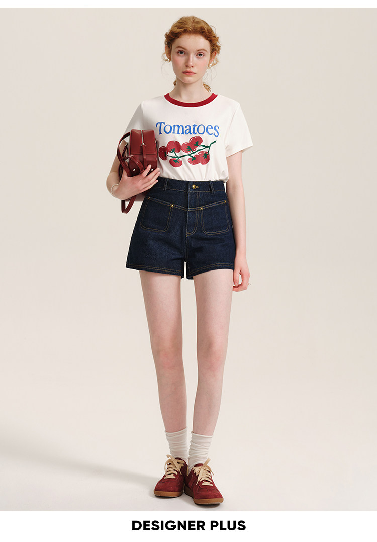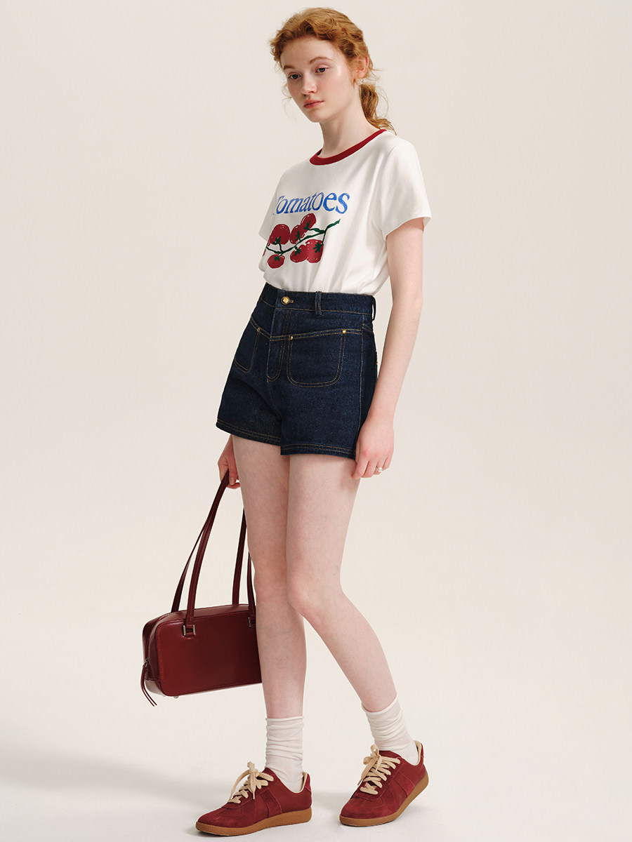High-Waisted Retro Denim Hot Pants Contrast Stitch & Patch Pocket