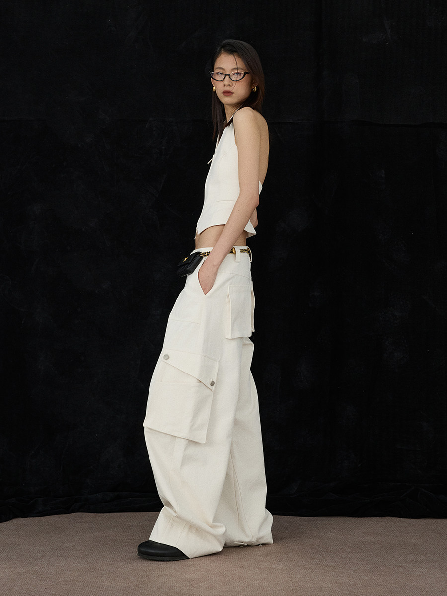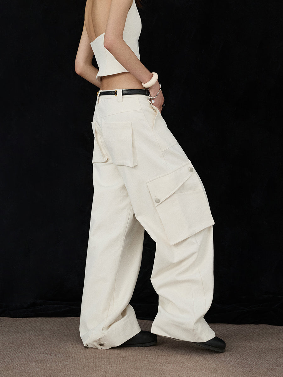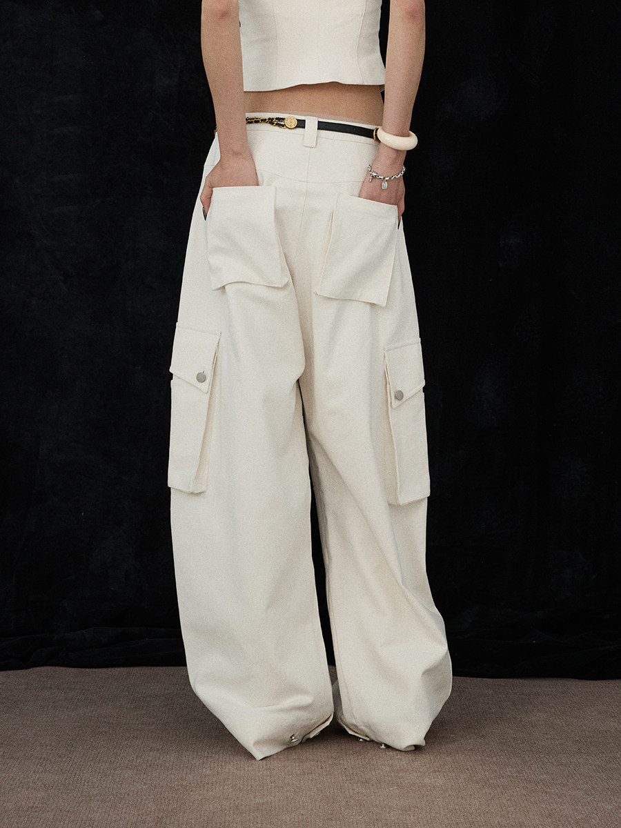 Ivory Wide-Leg Cargo Pants Deconstructed Fit