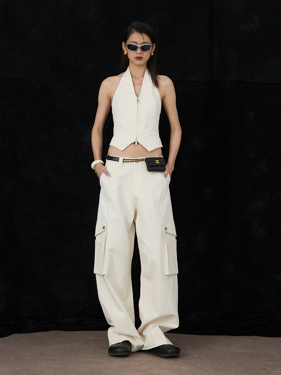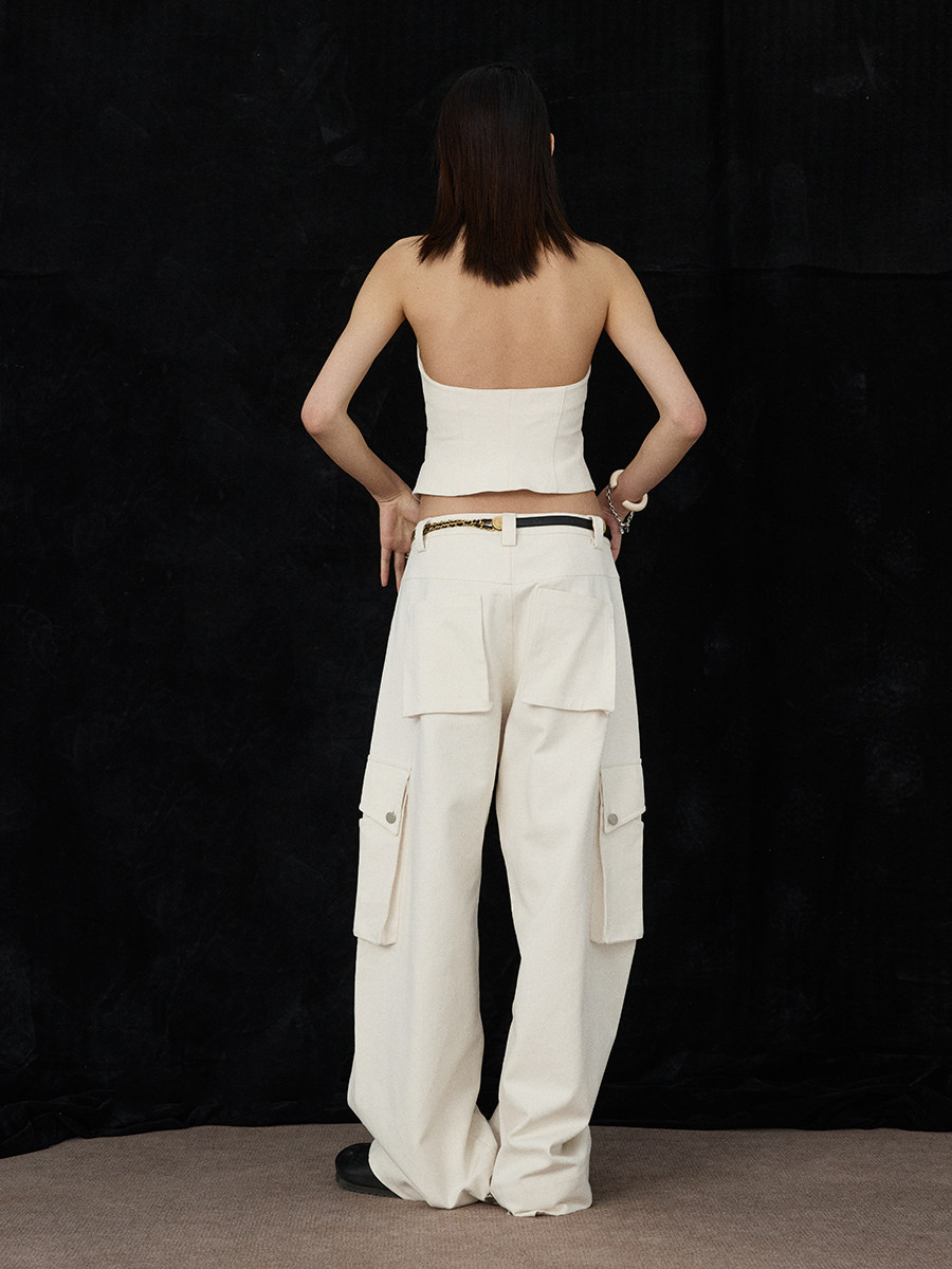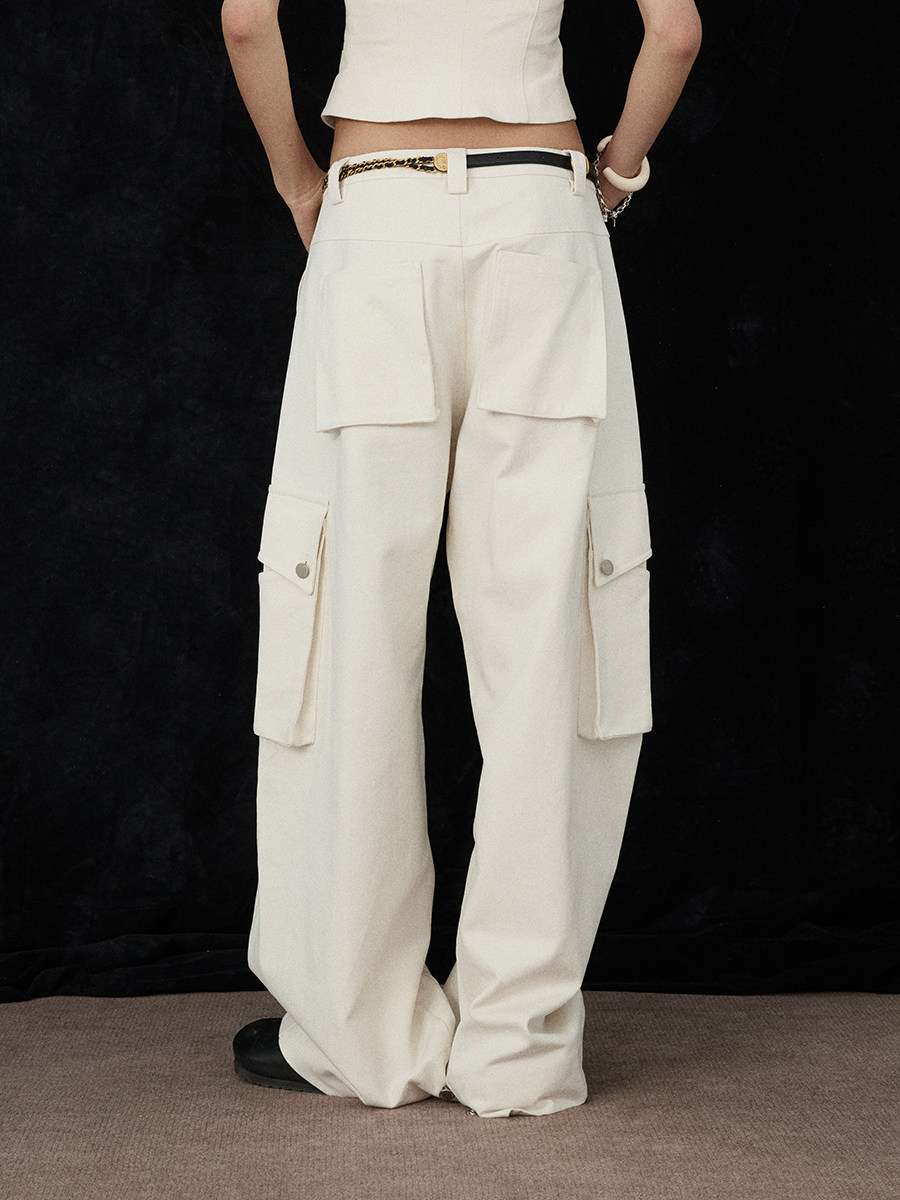 Ivory Wide-Leg Cargo Pants Deconstructed Fit