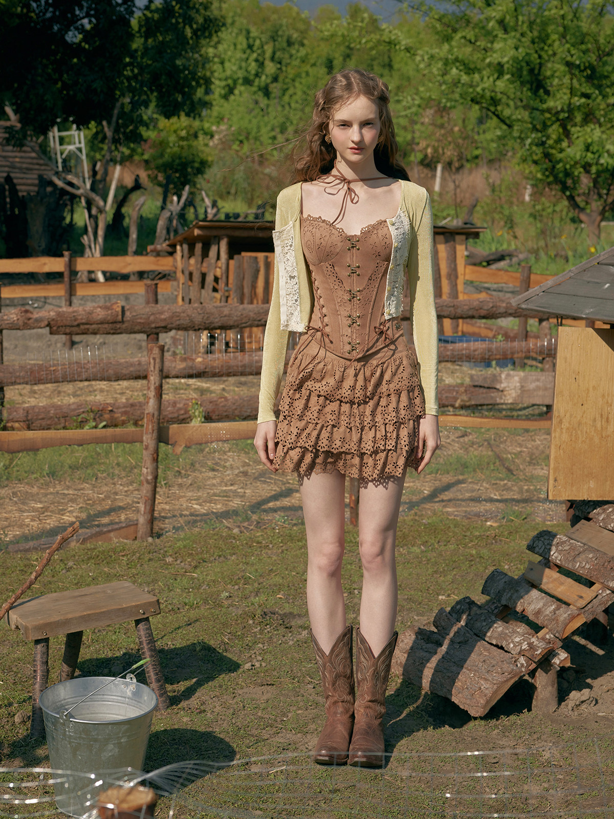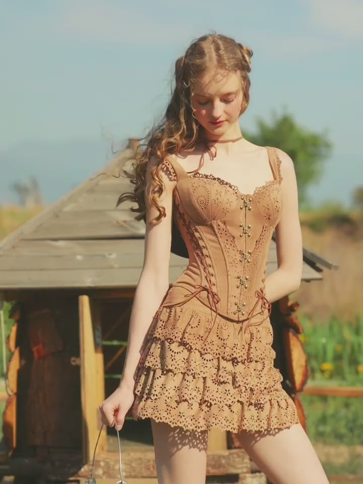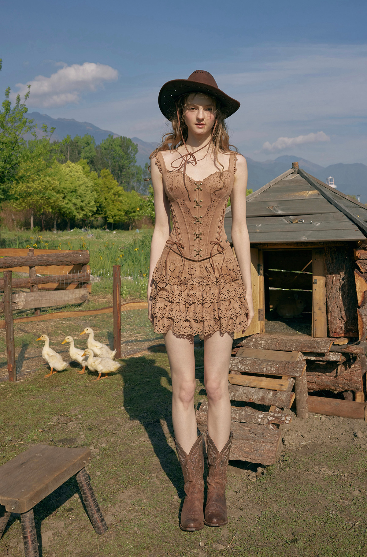 Vintage Cut-Out Suede Herringbone Bodice Skirt