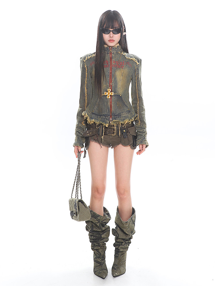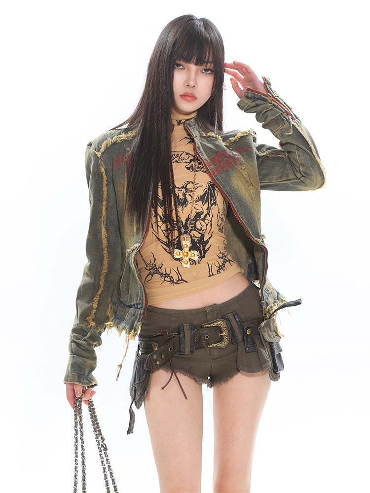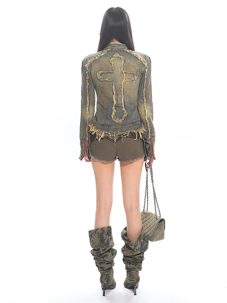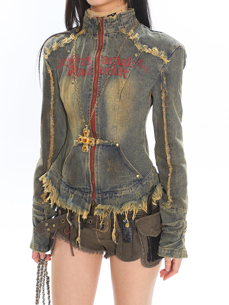 Introducing the Women's Retro Gothic Rock Wash Jacket. This jacket combines retro-inspired style with a modern twist. Crafted with high-quality material, it offers both comfort and durability. Perfect for any occasion, it will elevate any outfit. Embody the rebel chic look effortlessly with this versatile jacket.