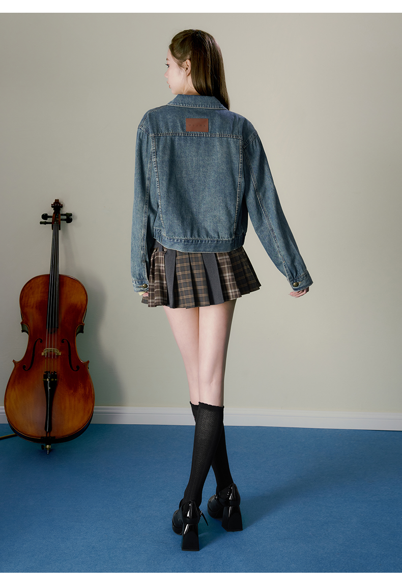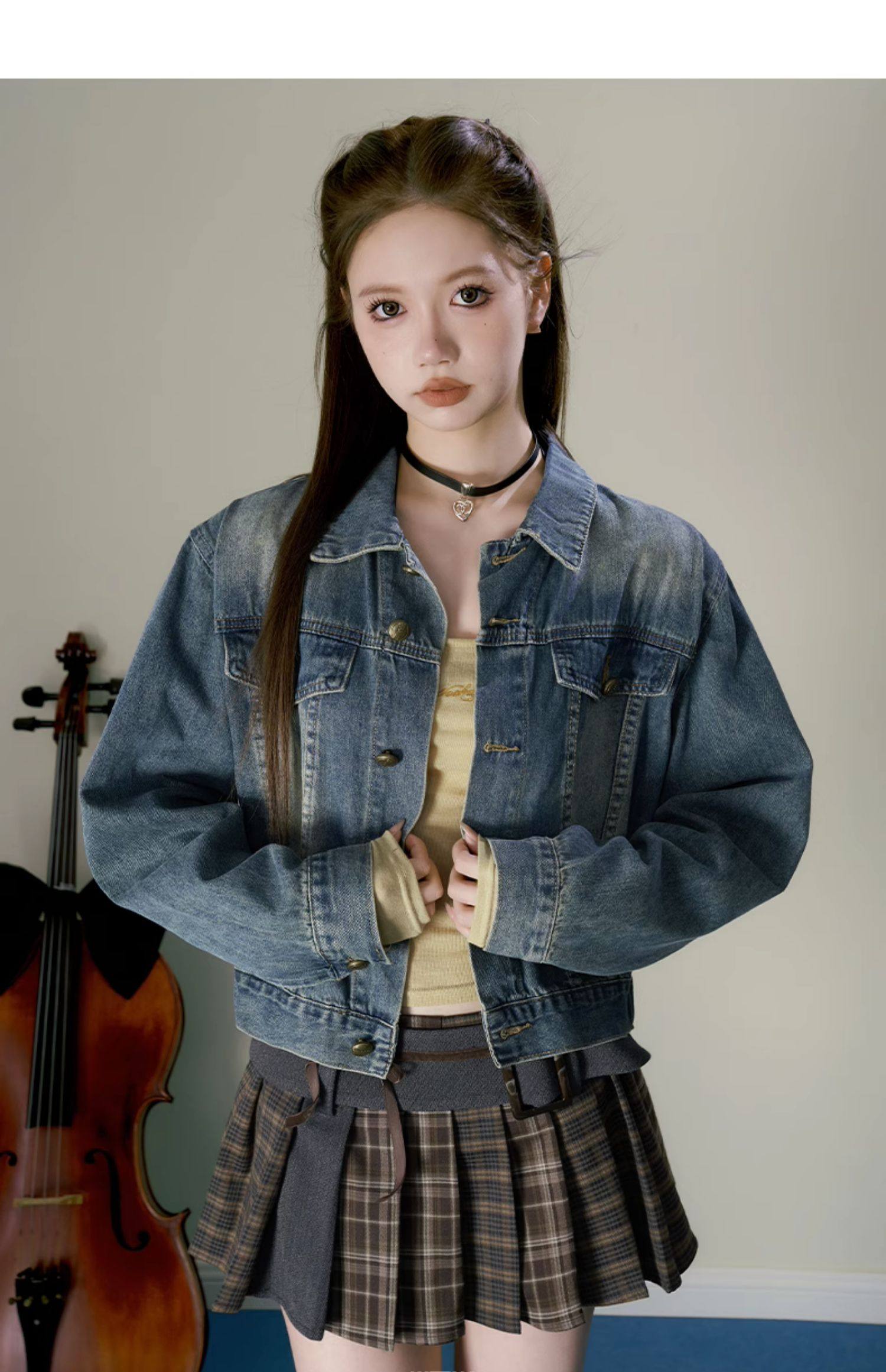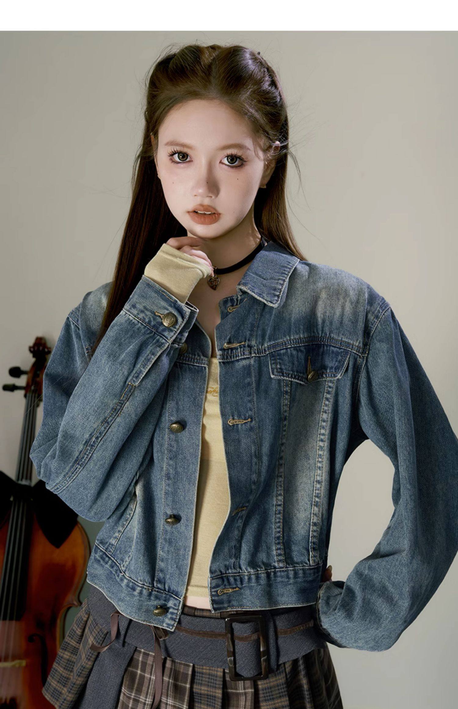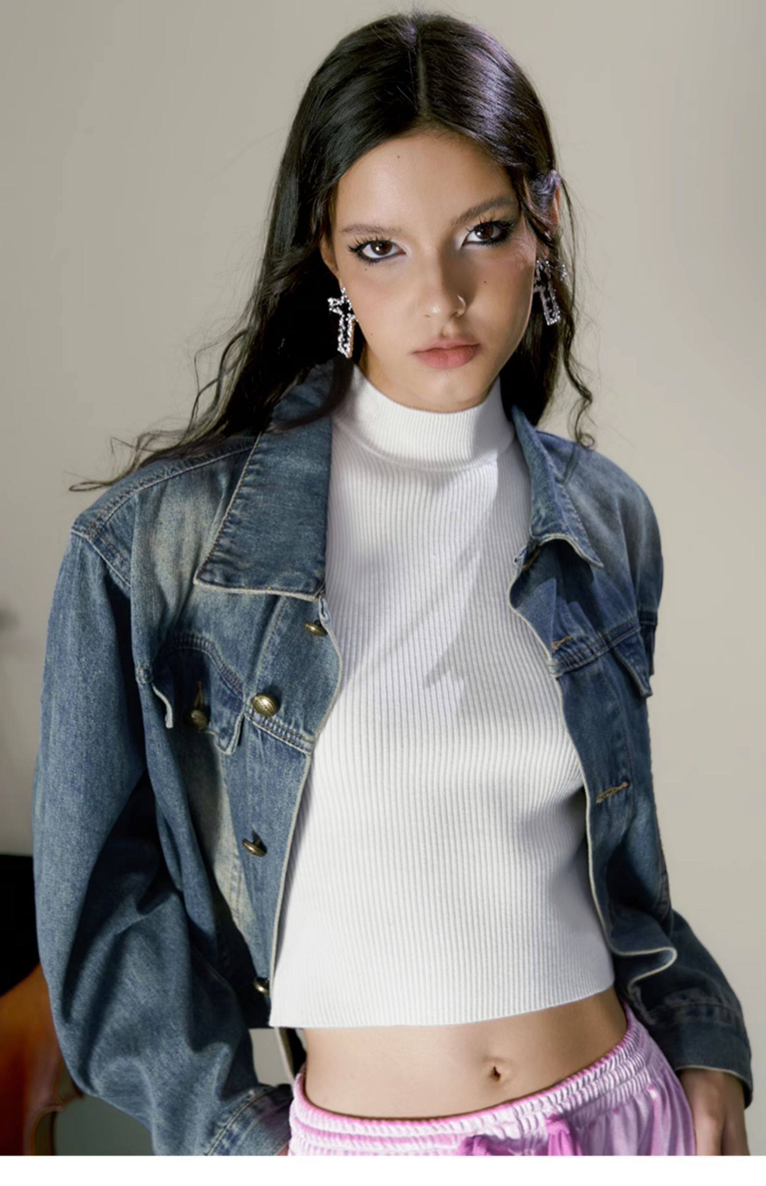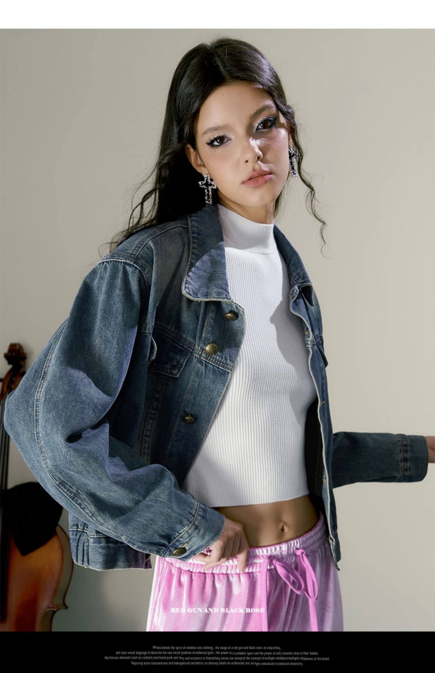 Retro Simple Versatile Cool Sassy Short Blue Denim Jacket