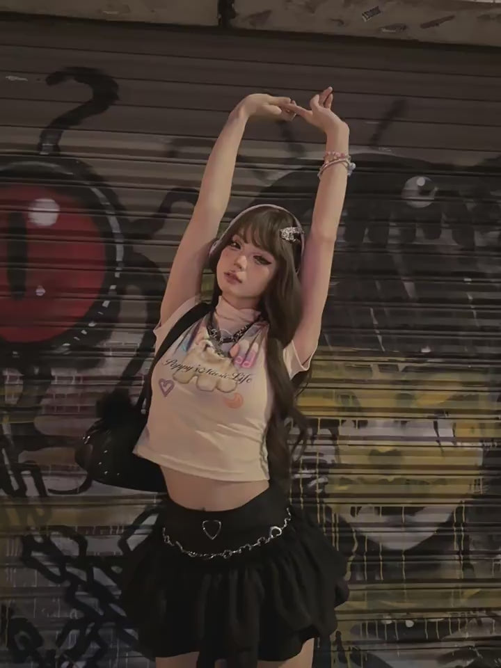 Rosemary Butterfly Graphic Irregular Slim T-Shirt Women's Spring/Summer Short Sleeve Top