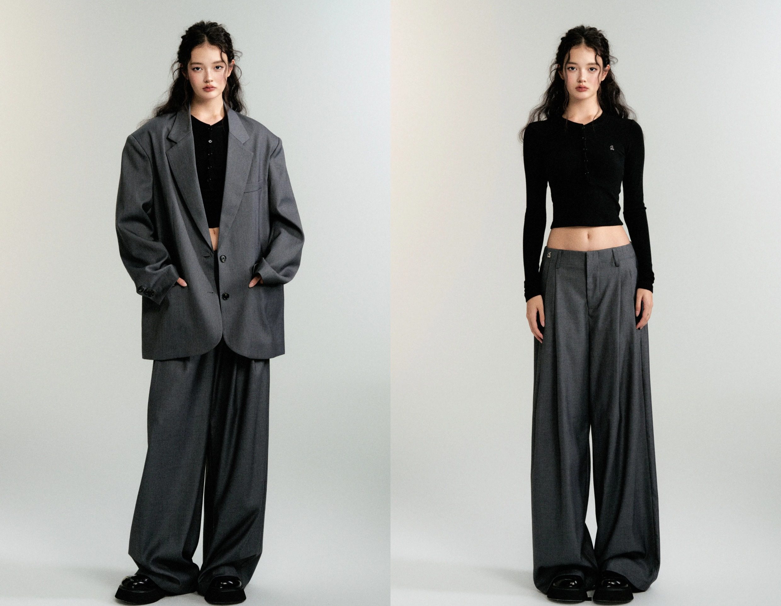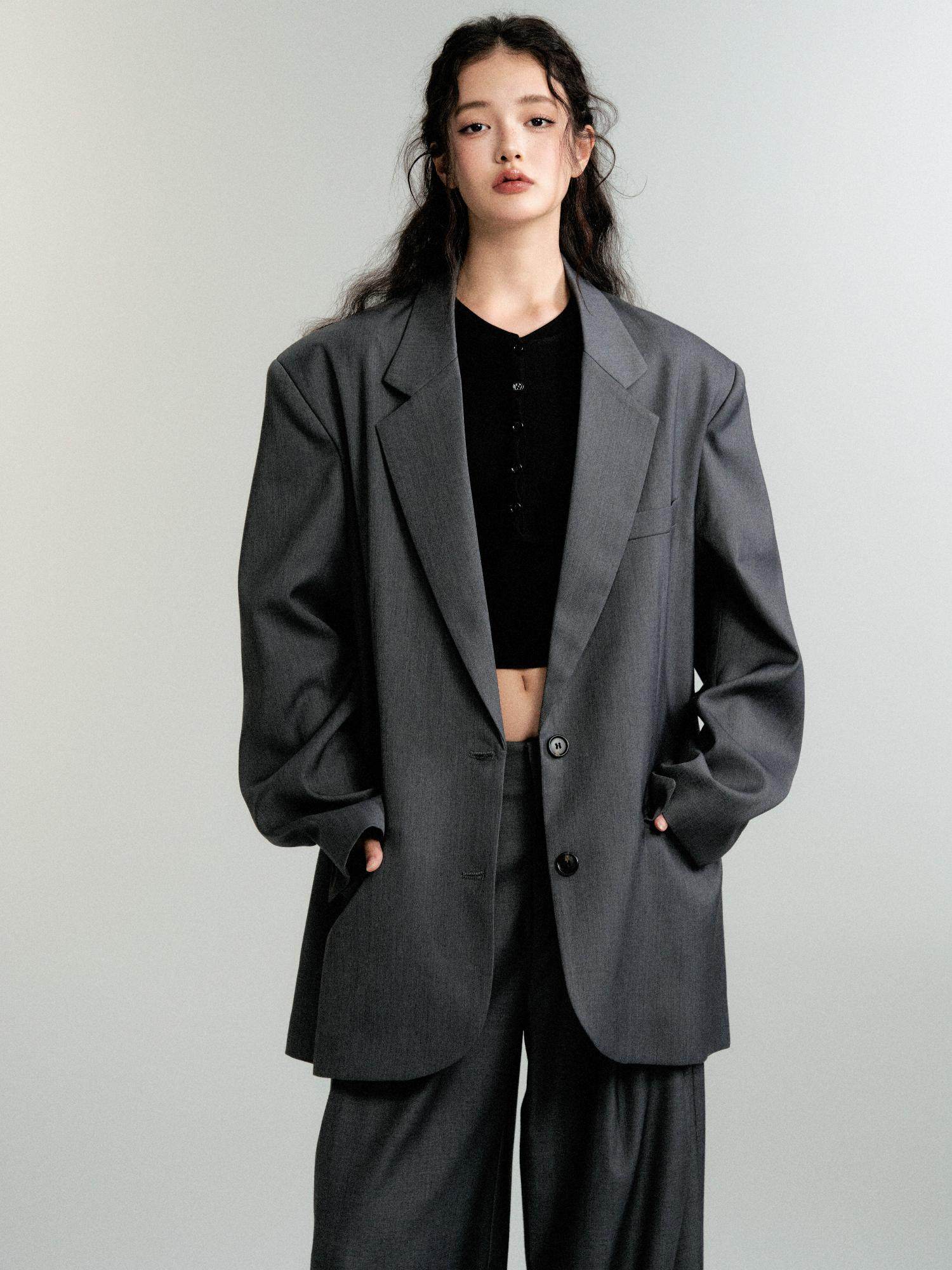Women's Classic Loose Padded Shoulder Suit Trouser Set