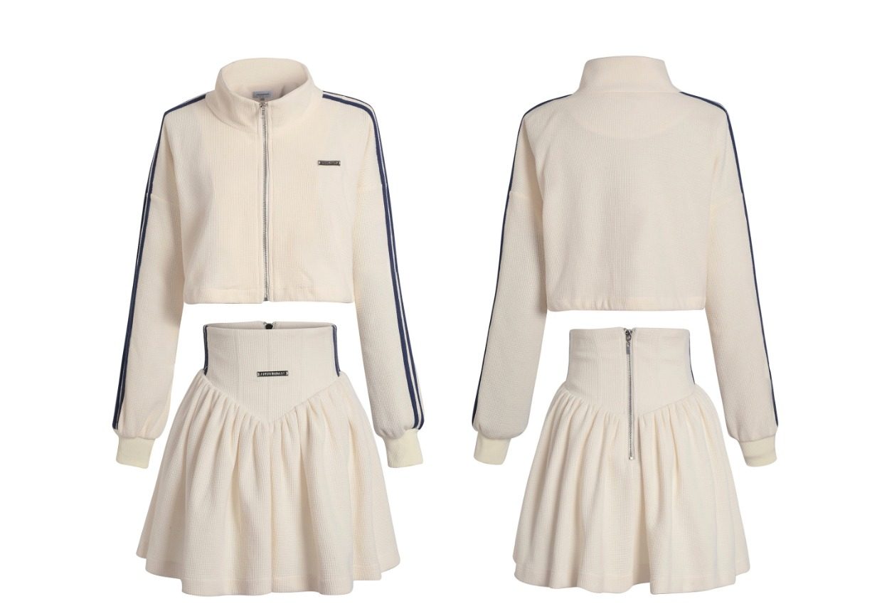 Women's Waffle Sweatshirt Tennis Skirt Fall Set
