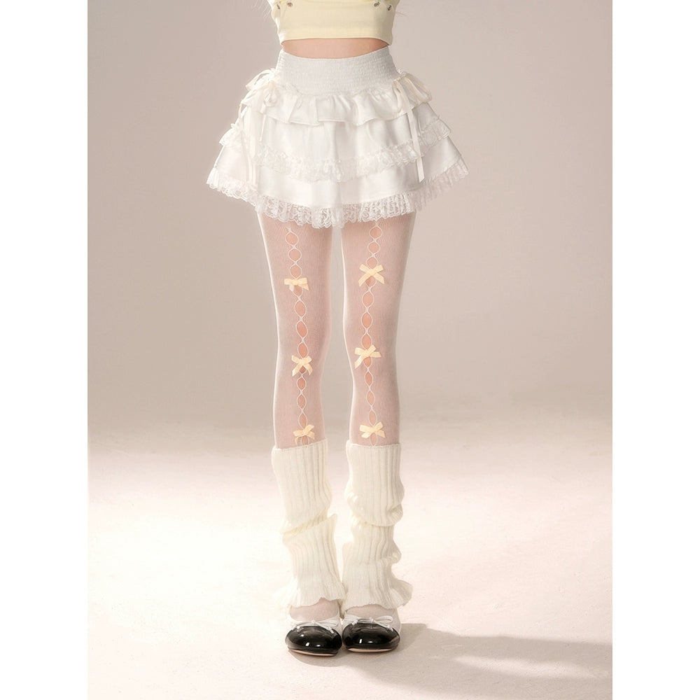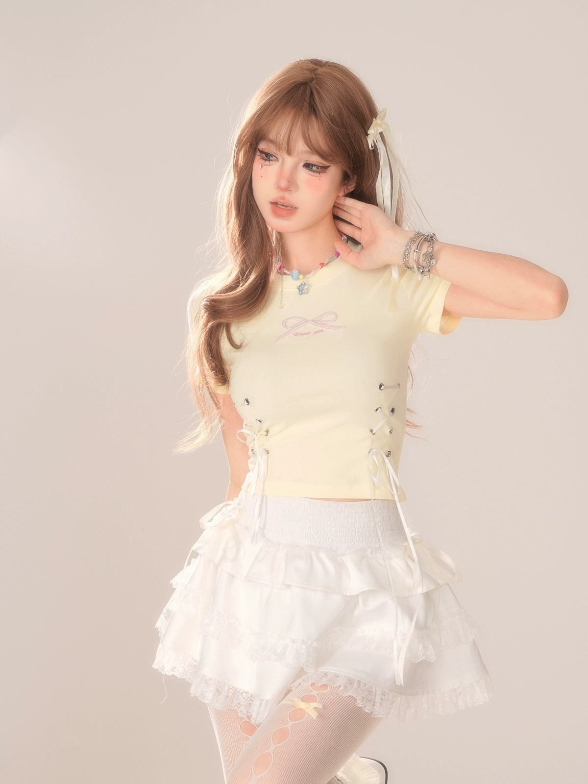 White Lace Cake Skirt Women's Elegant Short Layered Skirt