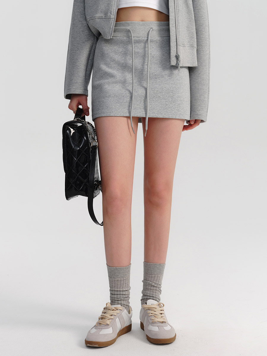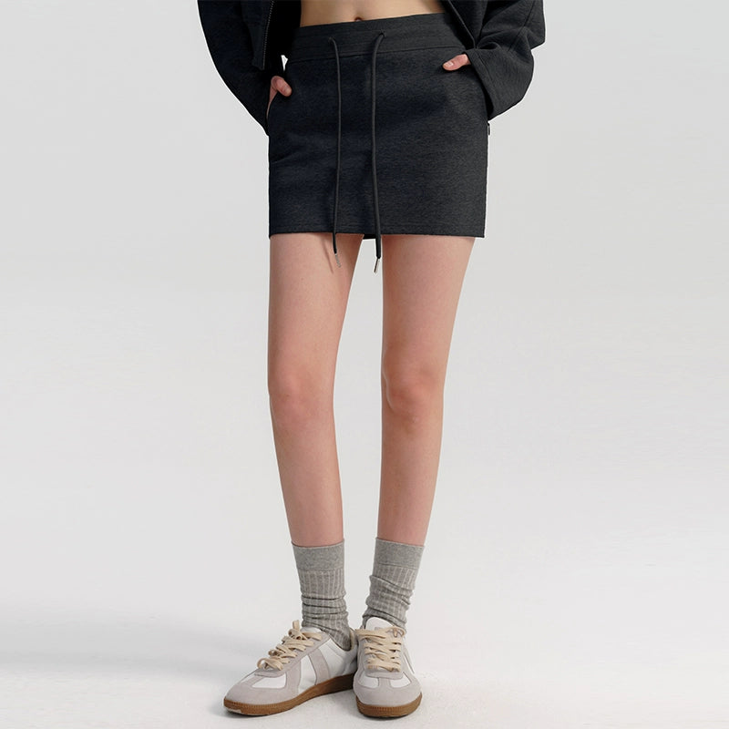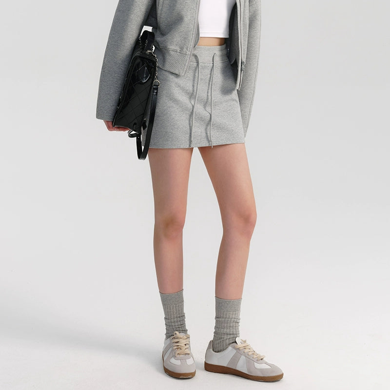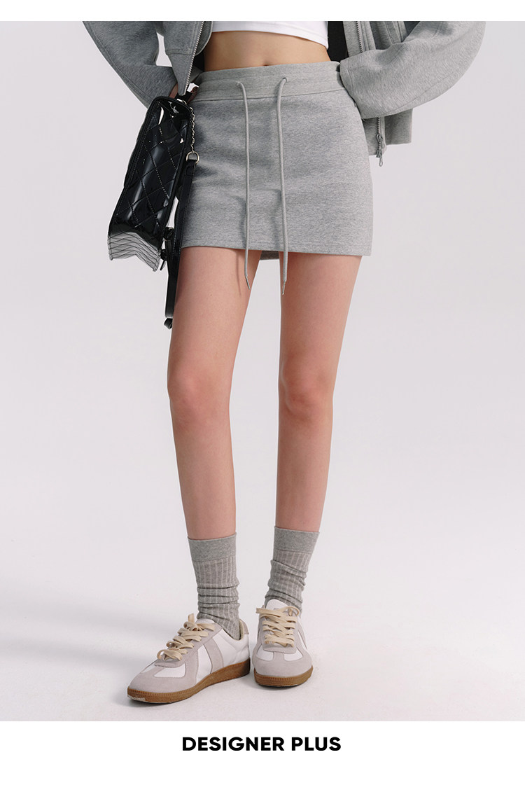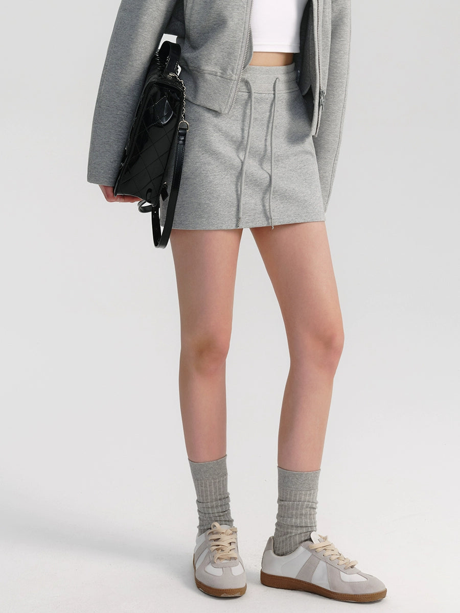 Women's Grey Athleisure Skirt High Waist Slim A-Line Hip Skirt with Drawstring