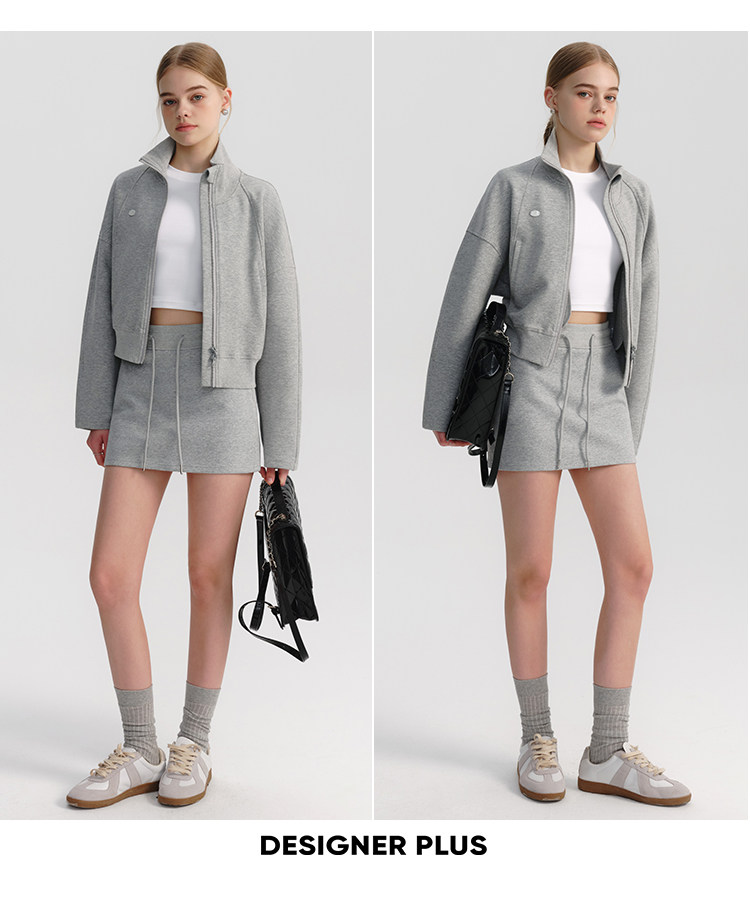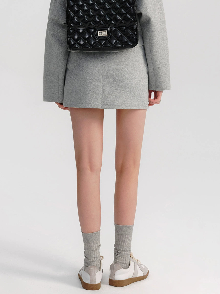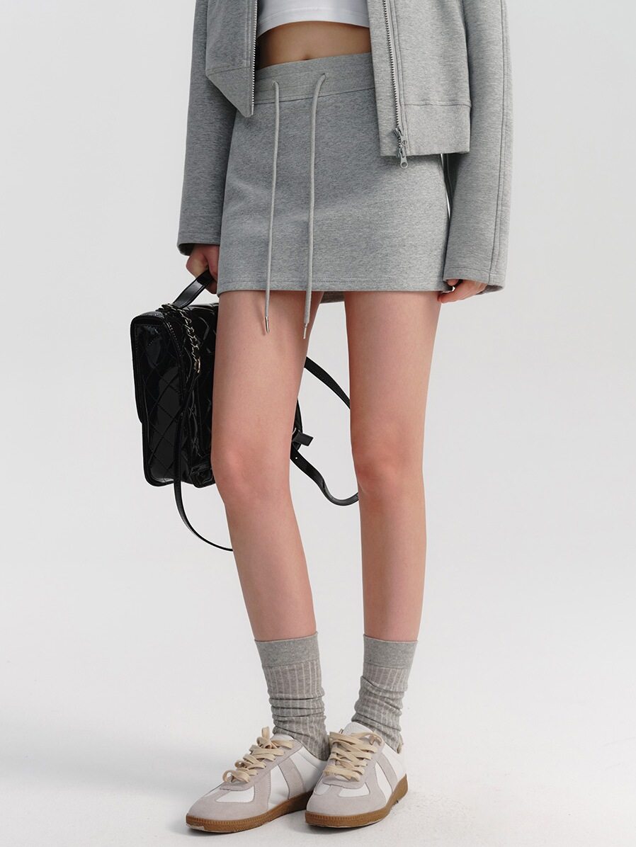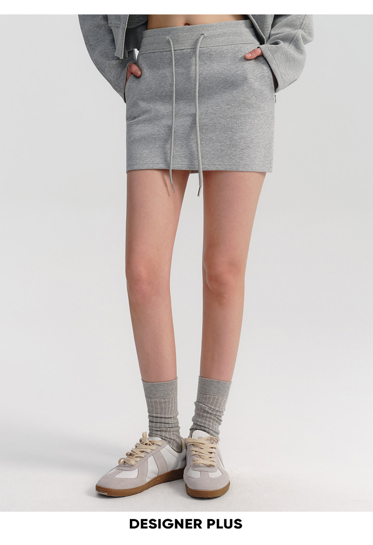 Women's Grey Athleisure Skirt High Waist Slim A-Line Hip Skirt with Drawstring