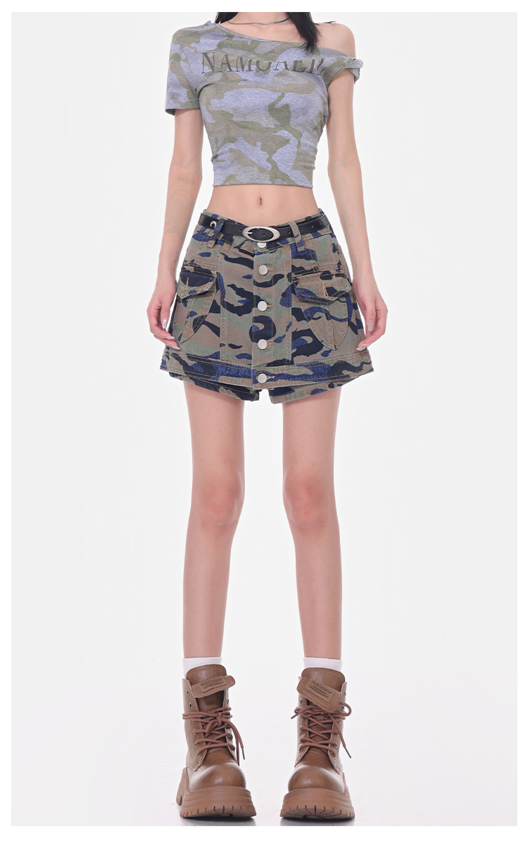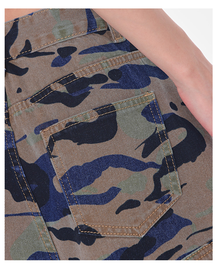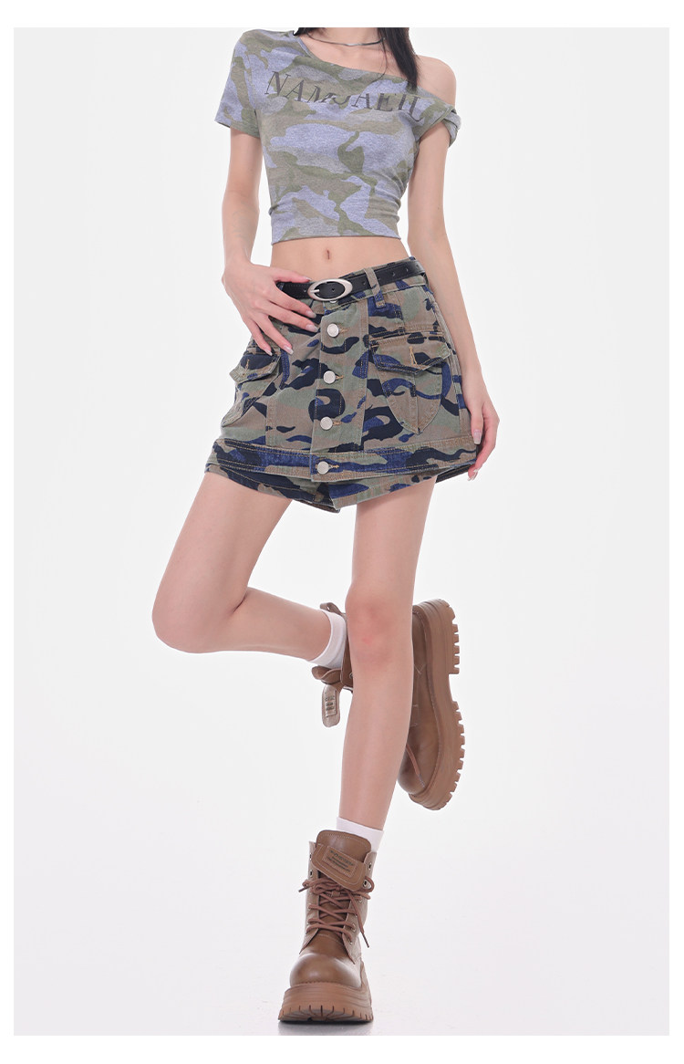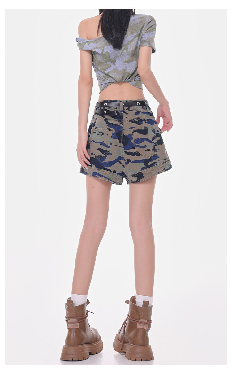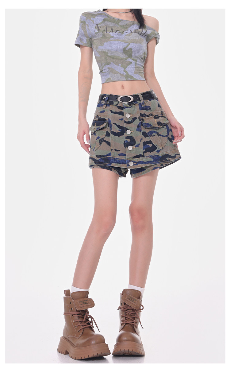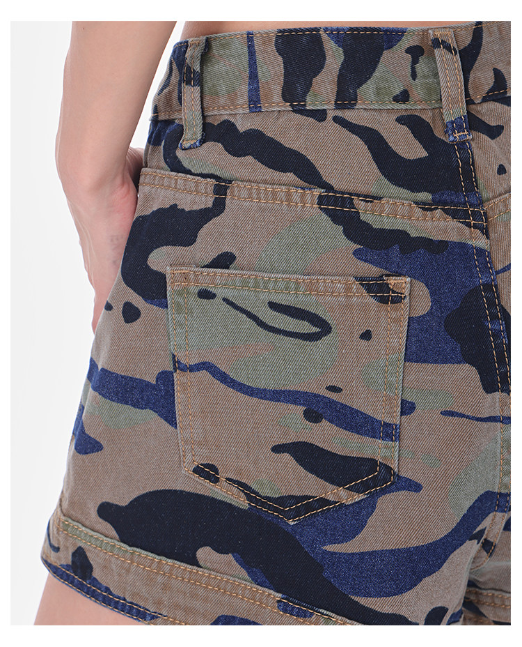Women's Summer High-Waisted Camouflage Denim Cargo Culottes Slimming Hot Shorts