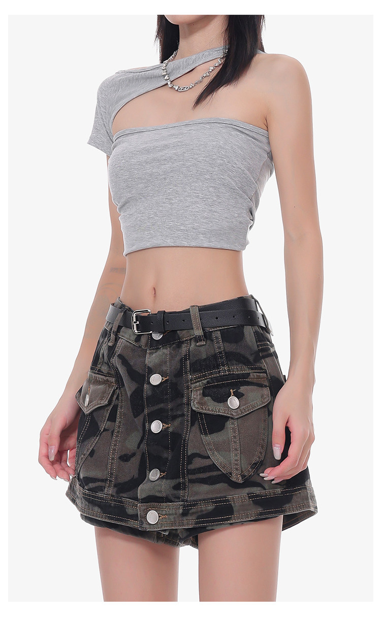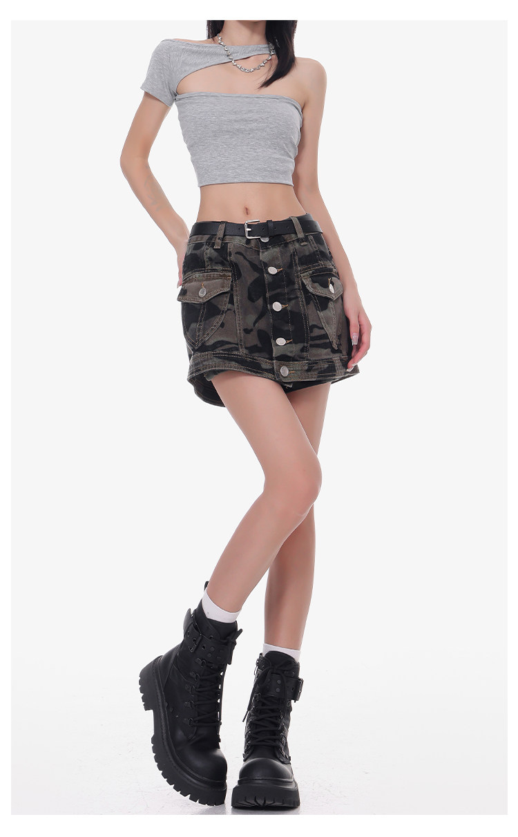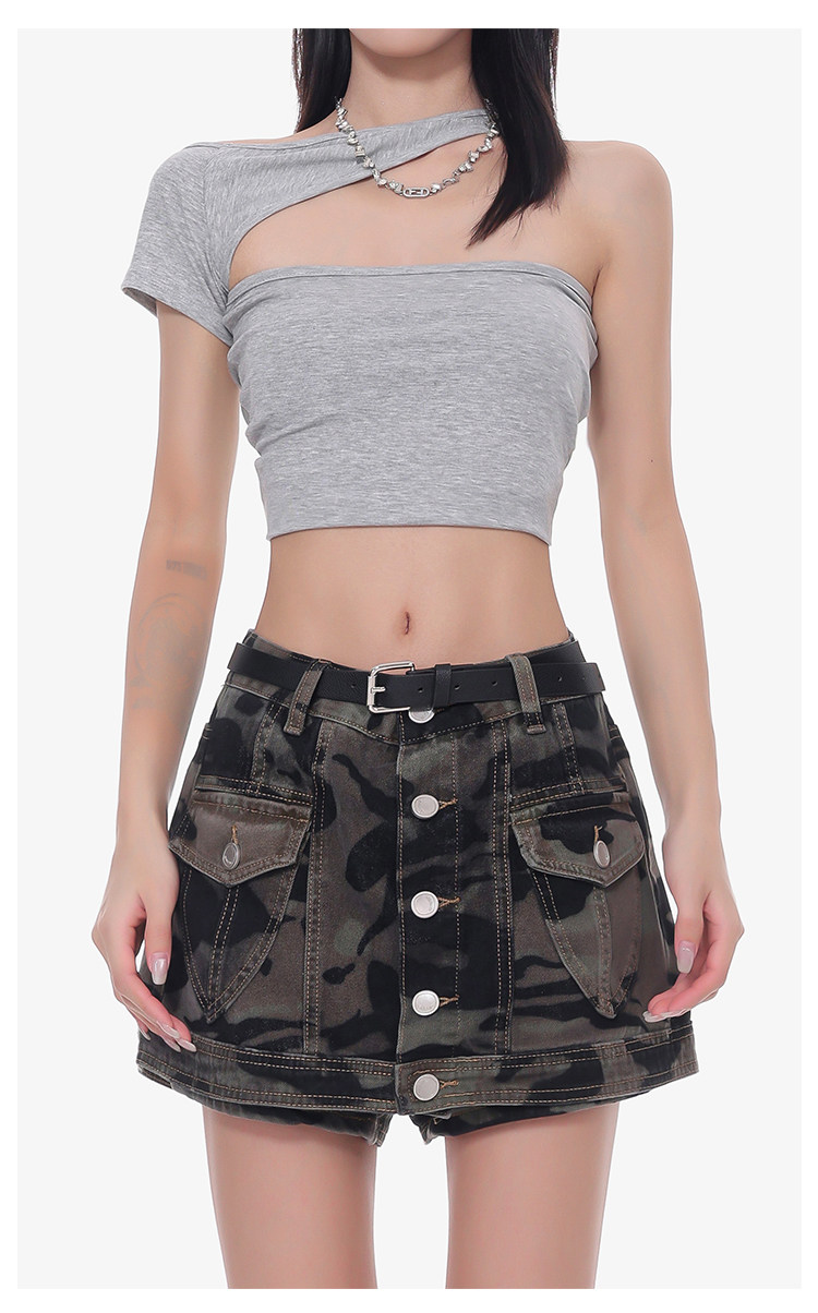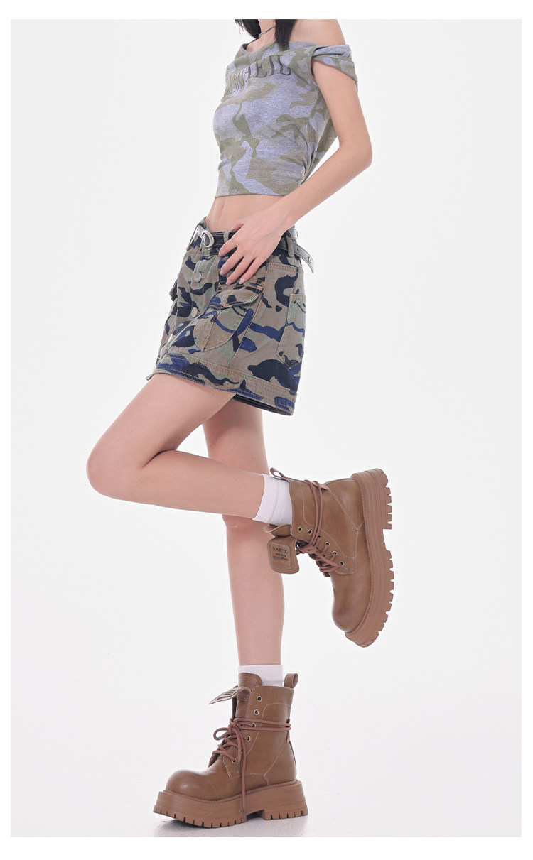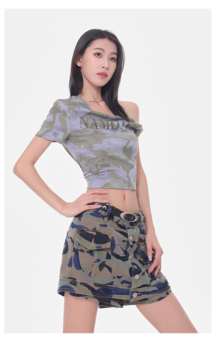 Women's Summer High-Waisted Camouflage Denim Cargo Culottes Slimming Hot Shorts